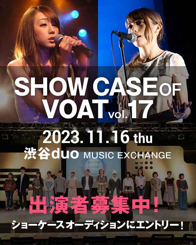 ショーケースオブVOATは、メジャーデビューを目指すあなたのために毎年2月に東京で開催される音楽業界へのプレゼンライブです。大手レコード会社と音楽プロダクションから毎年35社、50名の方々がスカウトに来場するので大きなデビューチャンスです!