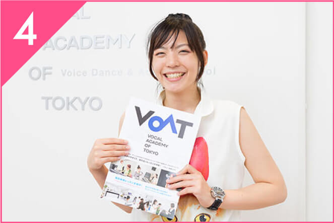 毎月校内でオーディションをしていて、デビューの実績も多かったので入校しました。 VOATのレッスンを受けるようになってからは、自分の歌に自信が持てるようになりました。 作詞や作曲のコツを教わって、オリジナル曲を作ることができました。 20代・女性/アルバイト